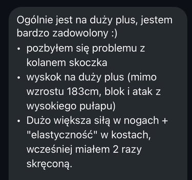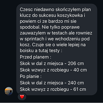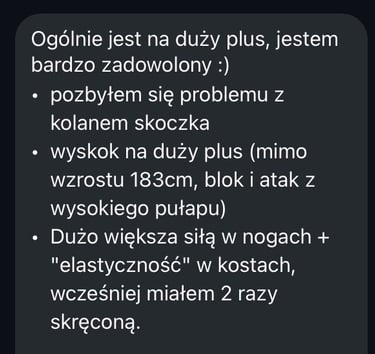 Oprócz poprawy wyskoku obserwujemy realną poprawę poruszania się na korcie, siły, wytrzymałości i sylwetki.