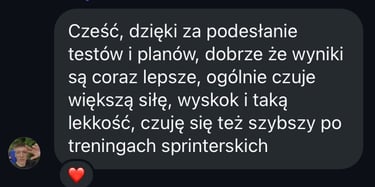 Pierwszym Twoim zadaniem będzie wykonanie testów sprinterskich, skocznościowych i ruchowych, na podstawie których odpowiednio dobiorę środki treningowe i które będą służyć do monitorowania progresu. Testy możemy wykonać również na żywo w Warszawie.