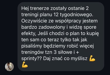 Na podstawie wszystkich informacji opracowuję plan treningowy dostosowany do Twoich potrzeb, celów, poziomu i wybranego pakietu!